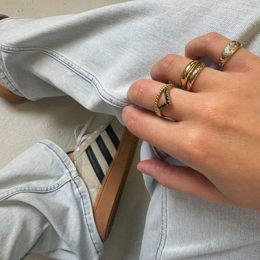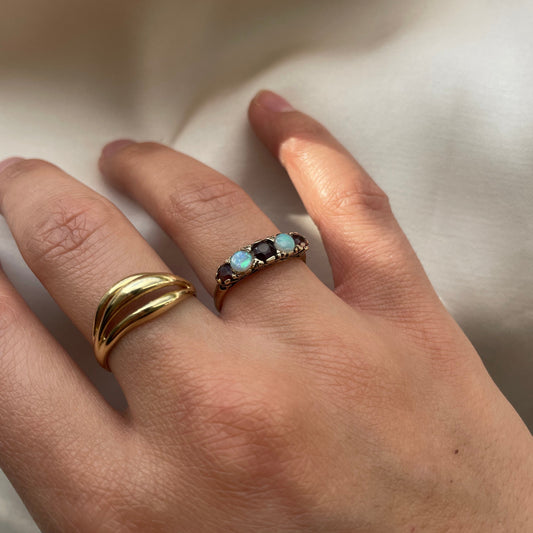 ELLA | 9k vintage leaves ring met Saffier en Robijn